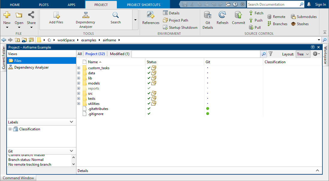 Проекты помогают вам организовать большие проекты моделирования путем нахождения требуемых файлов, управления и совместного использования файлов и настроек, и взаимодействия с системой контроля версий. Смотрите Using Projects to Collaborate, Track, и Merge Changes и Perform Code Reviews (4 min, 50 секунд) и смотрите то, Что Проекты? и О Системе контроля версий с Проектами.
