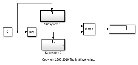 Откройте простую модель с двумя взаимоисключающими активированными подсистемами.
