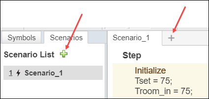 В панели на левой стороне Тестового Редактора Последовательности переключитесь на вкладку Scenarios и нажмите Use Scenarios.