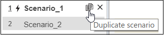 Чтобы начать с существующего сценария, можно скопировать его. Перейдите к вкладке Scenarios. Укажите на Scenario_1 в Списке Сценариев, чтобы отобразить Дублирующуюся кнопку сценария. Нажмите Дублирующуюся кнопку сценария, чтобы добавить новый сценарий по имени Scenario_3, который имеет то же содержимое как Scenario_1.