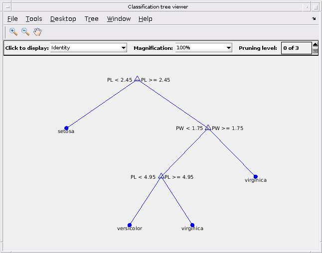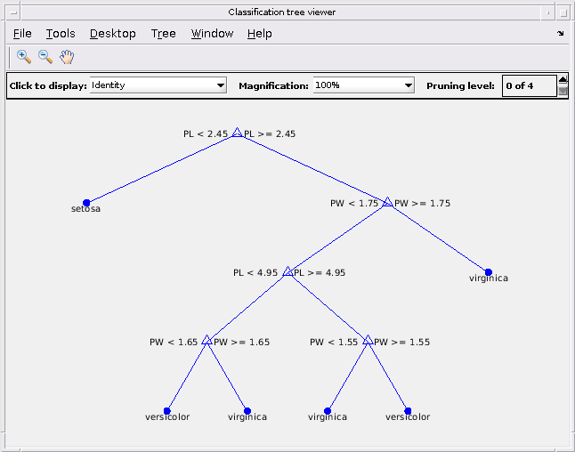 Figure Classification tree viewer contains an axes object and other objects of type uimenu, uicontrol. The axes object contains 15 objects of type line, text.