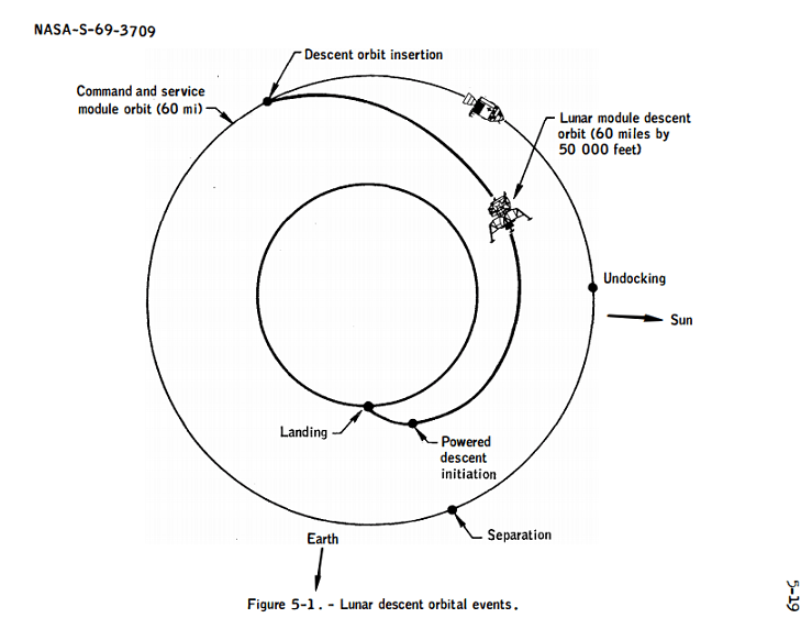 Траектория модуля во вставке орбиты Спуска (сокращение Engine) и Приводимое в действие инициирование спуска (воспламенение Engine) обеспечивается в Отчете Миссии Аполлона 11 (7-II Таблица. - Параметры траектории).