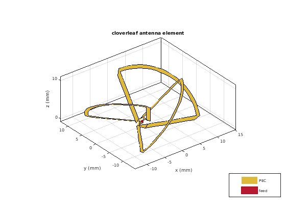 ant = cloverleaf; freq = linspace(5.5e9, 6.05e9, 51); figure; show(ant);