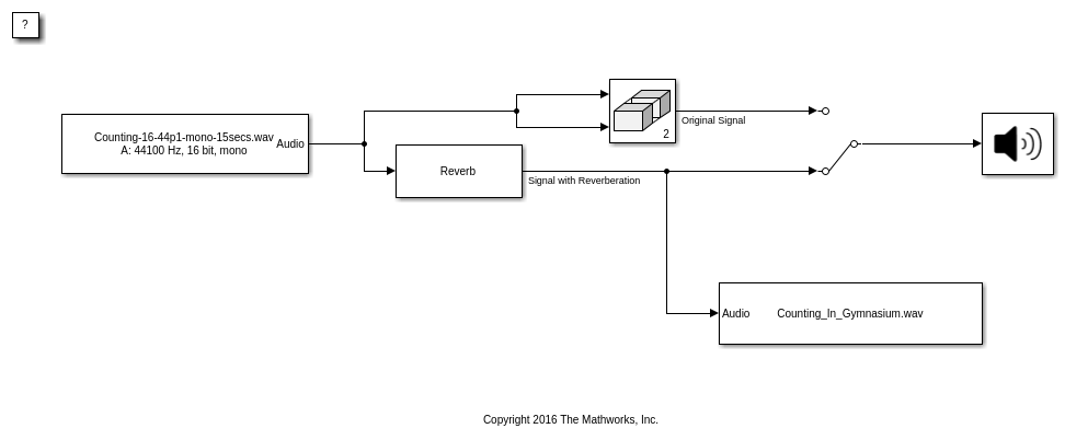 Блок Reverberator добавляет реверберацию в моно или звуковые сигналы стерео. Вы можете настройки параметров блока Reverberator, чтобы подражать различным акустическим средам.
