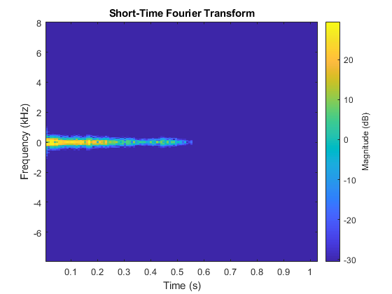 figure stft(myAudio,fs,'Window',hann(256,'periodic'),'OverlapLength',128);