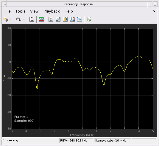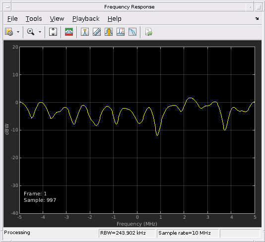 Чтобы включить это свойство, установите Visualization свойство к 'Impulse response', 'Frequency response', 'Doppler spectrum', или 'Impulse and frequency responses'.