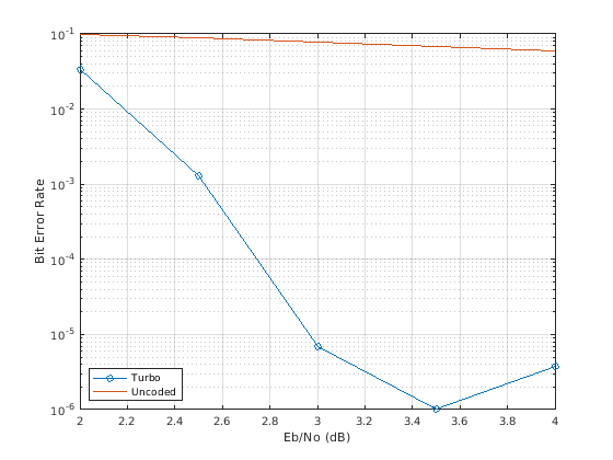 создает турбо Системный объект энкодера. Этот объект выполняет турбо кодирование с помощью конфигурации объекта по умолчанию.turboenc = comm.TurboEncoder