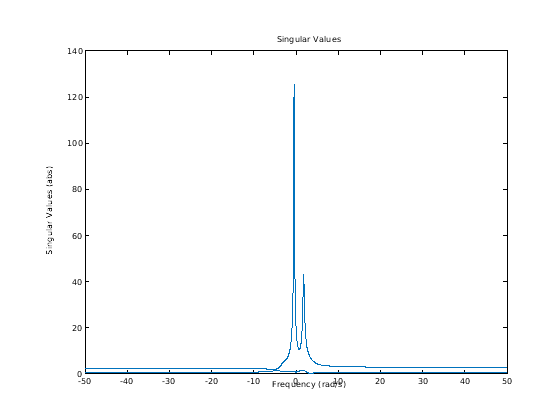 Если sys модель MIMO, затем пиковое усиление является самым большим значением 2-нормы частотной характеристики (самое большое сингулярное значение через частоту) sys. Это количество также называется нормой L∞ sys, и совпадает с нормой H∞ для устойчивых систем (см. norm).