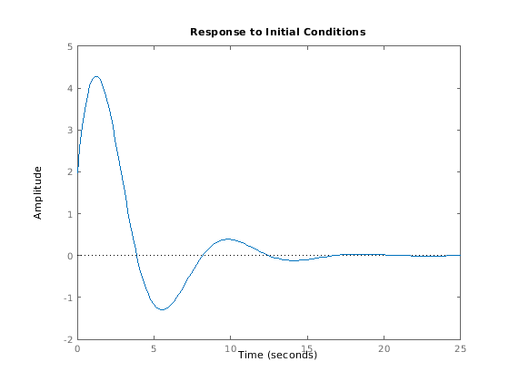 initial(sys,x0) вычисляет добровольный ответ пространства состояний (ss) модель sys с начальным условием на состояниях, заданных векторным x0: