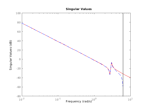 Если sys одно вход, модель (SISO) одно выхода, затем график сингулярного значения похож на Предвещать ответ величины.