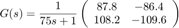 s = tf('s'); G = [87.8 -86.4 ; 108.2 -109.6]/(75*s+1); G.InputName = {'L','V'}; G.OutputName = {'yD','yB'};