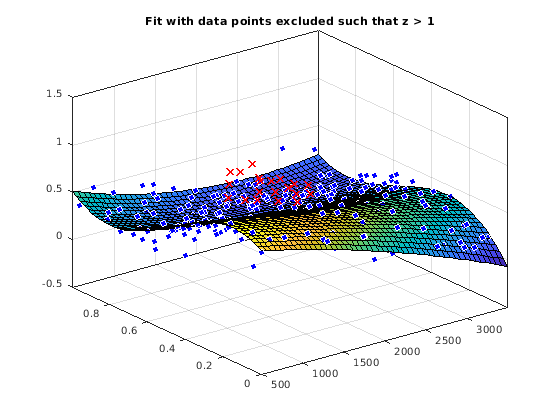 Exclude — Точки, чтобы исключить из подгонкиТочки, чтобы исключить из подгонки в виде разделенной запятой пары, состоящей из 'Exclude' и один из: