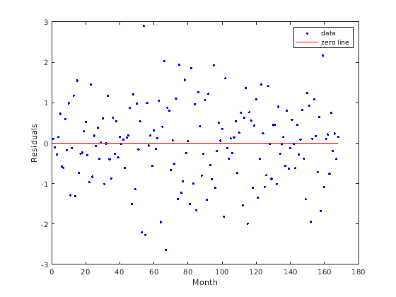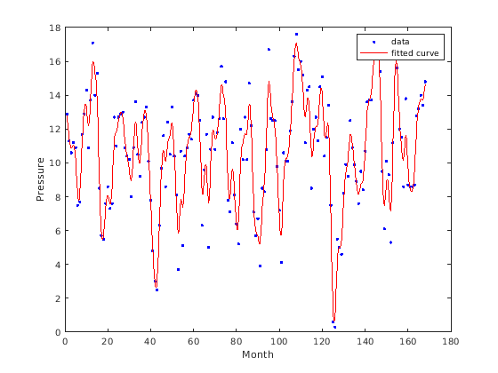 options.StartPoint = [10 1 3]; options.Lower = [0 -Inf 0]; fit(month,pressure,ft,options)