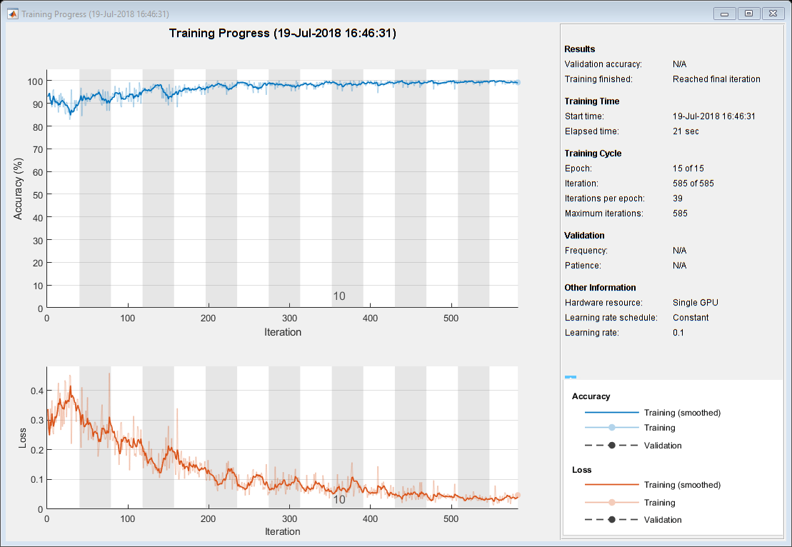 Изучить, как установить опции с помощью trainingOptions функционируйте, смотрите Настроенные Параметры и Обучите Сверточную нейронную сеть. После того, как вы идентифицируете некоторые хорошие стартовые опции, можно автоматизировать развертку гиперпараметров или попробовать Байесовую оптимизацию с помощью Experiment Manager.