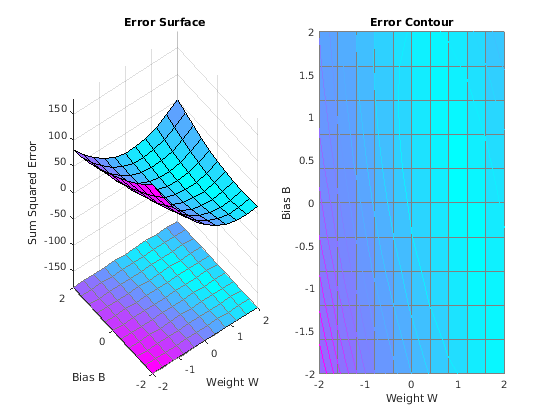 ES = errsurf(X,T,w_range,b_range,'purelin');