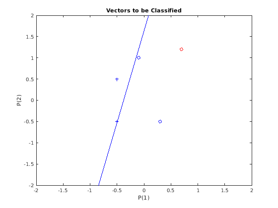 x = [0.7; 1.2]; y = net(x); plotpv(x,y); circle = findobj(gca,'type','line'); circle.Color = 'red';
