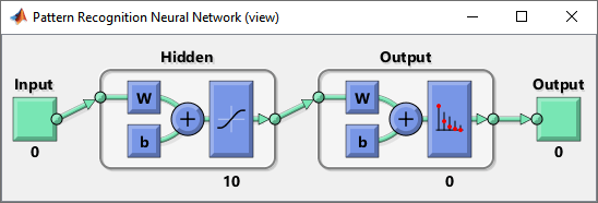 Ввод и вывод имеет размеры 0, потому что сеть еще не была сконфигурирована, чтобы совпадать с нашим входом и целевыми данными. Это произойдет, когда сеть будет обучена.