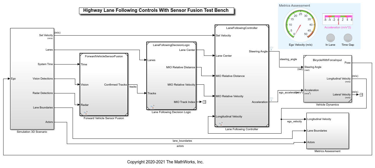 Автоматизированный маршрут после и маневры изменения маршрута помогают автономным транспортным средствам выбирать маршруты и перемещаться вдоль пути без коллизий, чтобы достигнуть места назначения. Вы можете смоделировать маршрут после или систему маневра изменения маршрута путем интеграции обнаружения маршрута, cочетания датчиков, логики решения, и управляете методами. Далее, можно выполнить генерацию кода и software-the цикл (SIL) валидация моделей для того, чтобы удовлетворить требованиям в реальном времени. Эти примеры показывают, как спроектировать, протестировать, и выполнить валидацию SIL маршрута после и моделей изменения маршрута для магистрали ведущие сценарии.