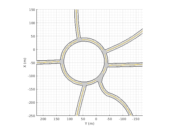 Если дороги, которые вы импортируете, не смотрят как ожидалось, рассматривают импорт их при помощи приложения Driving Scenario Designer. Приложение может сделать процесс из поиска и устранения неисправностей и исправления дорог легче, чем попытка диагностировать и откорректировать их при помощи roadNetwork функция.
