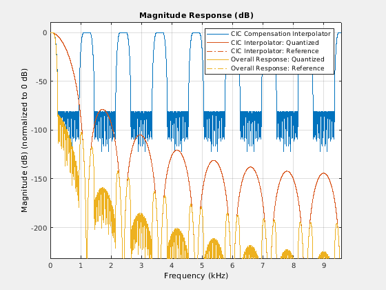 возвращает Системный объект, ciccompint = dsp.CICCompensationInterpolatorciccompint, это применяет КИХ-интерполятор к каждому каналу входного сигнала. Используя свойства объекта, фильтр интерполяции может быть спроектирован, чтобы компенсировать последующий CIC-фильтр.