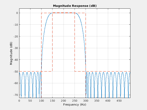 Когда вы не используете MAGUNITS аргумент, fdesign принимает, что все величины находятся в децибелах. Обратите внимание на то, что fdesign хранилища все технические требования величины в децибелах (преобразующий в децибелы, когда необходимый) независимо от того, как вы задаете величины.