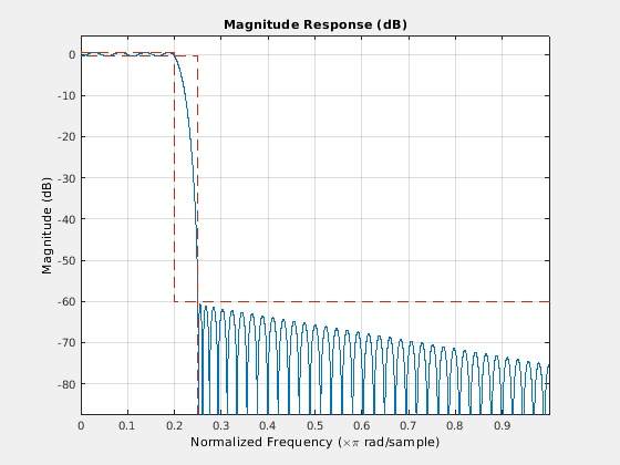 Когда вы не используете MAGNUNITS аргумент, fdesign принимает, что все величины находятся в децибелах. Обратите внимание на то, что fdesign хранилища все технические требования величины в децибелах (преобразующий в децибелы, когда необходимый) независимо от того, как вы задаете величины.