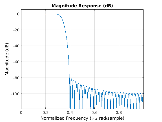 firDecim = designMultirateFIR(1,4,'SystemObject',true)firDecim =
