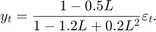 num = LagOp([1 -0.5]); denom = LagOp([1 -1.2 0.2]); quot = mrdivide(num,denom); [r1,r2] = isStable(denom)