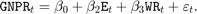 Рассмотрите модель многофакторной линейной регрессии, которая предсказывает США действительный валовой национальный продукт (GNPR) использование линейной комбинации общей занятости (E) и действительная заработная плата (WR).