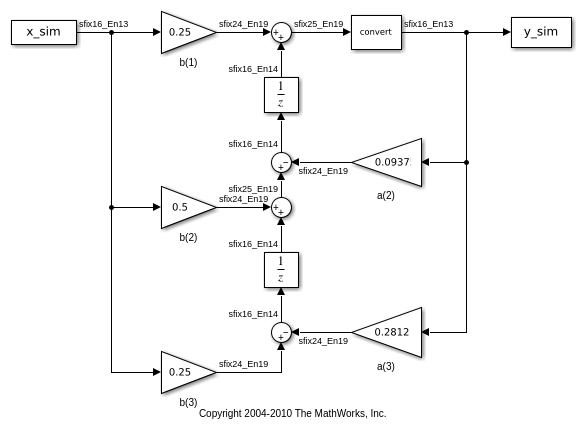 В этом примере показано, как спроектировать фильтры для использования с входом фиксированной точки.