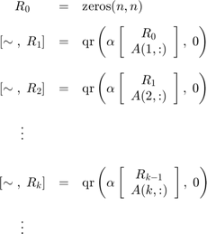[\sim\;,\;R_k] &=& \mbox{qr}\left(\alpha\left[\begin{array}{c}R_{k-1}\\