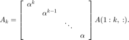 ![$$A_k = \left[\begin{array}{cccc}\alpha^k \\& \alpha^{k-1} \\