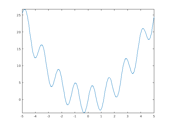 fun = @(x) x.^2 + 4*sin(5*x); fplot(fun,[-5,5])
