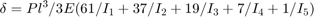 $$\delta = Pl^3/3E(61/I_1 + 37/I_2 + 19/I_3 + 7/I_4 + 1/I_5)$$
