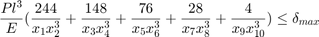 $$\frac{Pl^3}{E}(\frac{244}{x_1x_2^3} + \frac{148}{x_3x_4^3} +