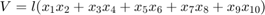 $$V = l(x_1x_2 + x_3x_4 + x_5x_6 + x_7x_8 + x_9x_{10})$$