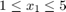 $$1 \leq x_1 \leq 5$$