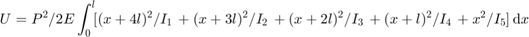 $$U = (P^2/2)(l^3/3E)(61/I_1 + 37/I_2 + 19/I_3 + 7/I_4 + 1/I_5)$$