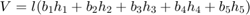 $$V = l(b_1h_1 + b_2h_2 + b_3h_3 + b_4h_4 + b_5h_5)$$