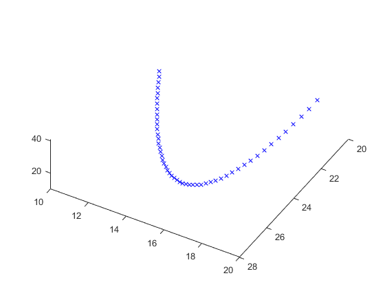 plot3(yout{1}.Values.Data,yout{2}.Values.Data,yout{3}.Values.Data,'bx');