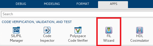 Откройте Apps галерея и выбирает FIL Wizard от Code Verification, Validation, and Test раздел.
