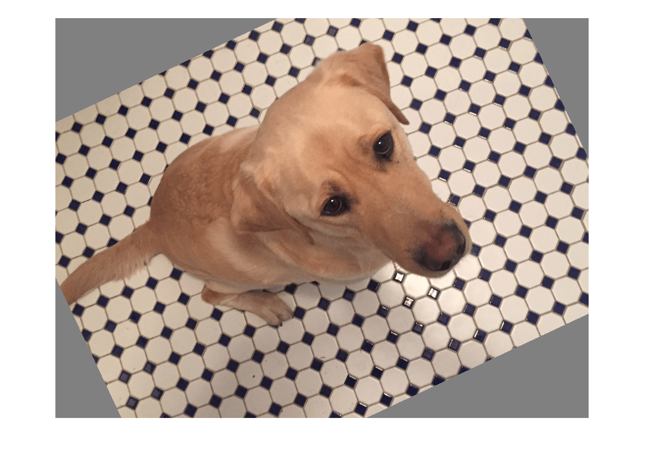 tform = randomAffine2d('Rotation',[-45 45]); outputView = affineOutputView(size(imOriginal),tform); imAugmented = imwarp(imOriginal,tform,'OutputView',outputView,'FillValues',[128 128 128]); imshow(imAugmented)