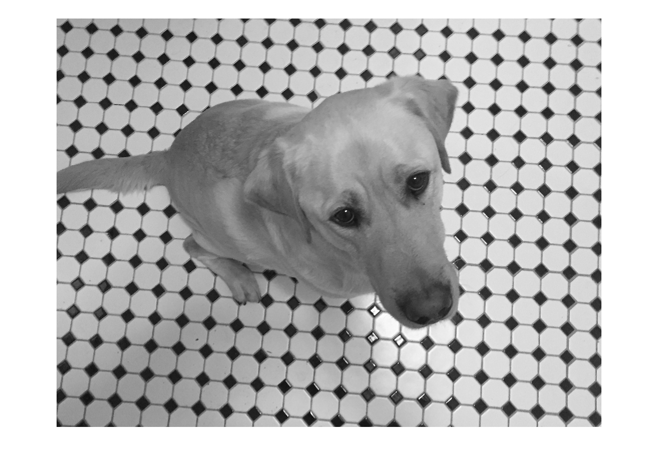 Преобразуйте демонстрационное изображение в шкалу полутонов. Задайте случайный контрастный масштабный коэффициент в области значений [0.8, 1] и случайное смещение яркости в области значений [-0.15, 0.15]. Умножьте изображение на контрастный масштабный коэффициент, затем добавьте смещение яркости.