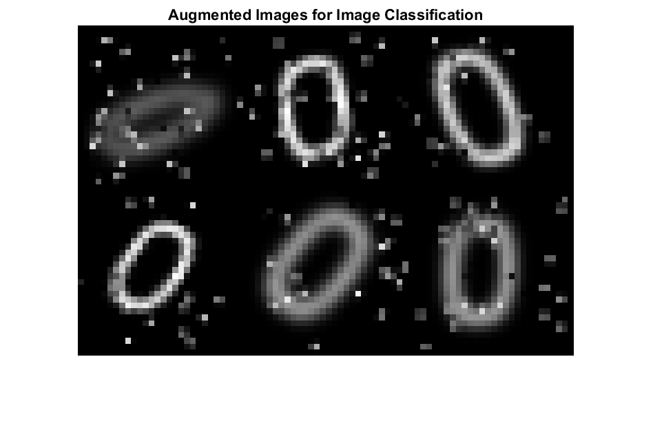 Используйте transform функция, чтобы применить любую комбинацию Image Processing Toolbox функционирует, чтобы ввести изображения. Добавление шума и размытости является двумя общими операциями обработки изображений, используемыми в применении глубокого обучения.