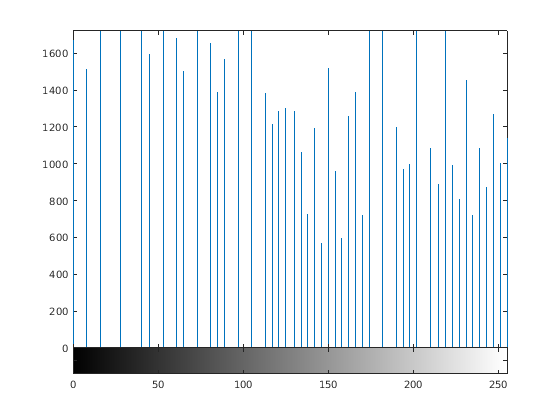 Вызовите imhist функционируйте снова, чтобы создать гистограмму компенсируемого изображения I2 . Если вы сравниваете эти две гистограммы, вы видите что гистограмма I2 более распространен в целой области значений, чем гистограмма I .