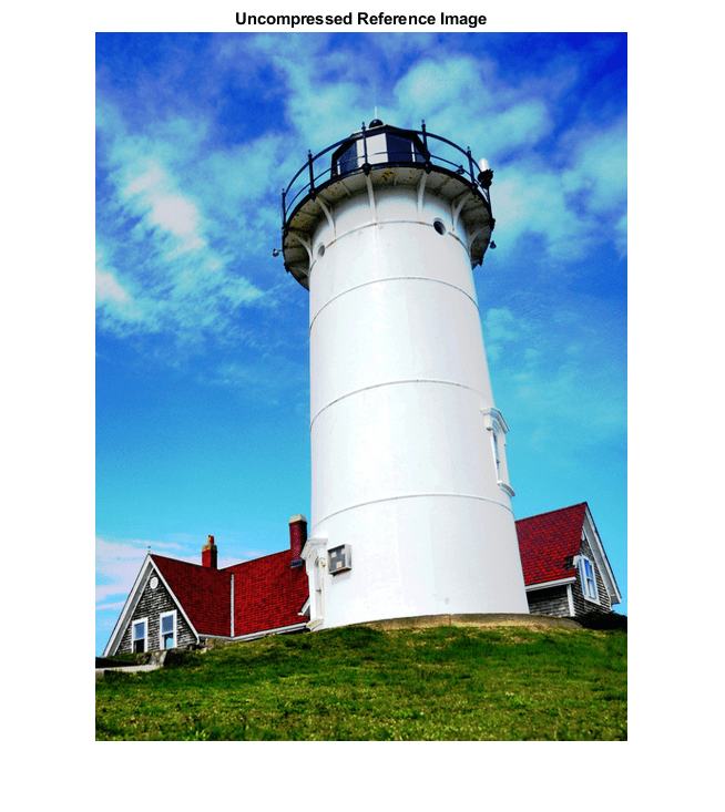 indx = 7; % Index of image to read from the test image datastore Ireference = readimage(testImages,indx); imshow(Ireference) title('Uncompressed Reference Image')