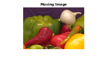 регулирует положение перемещения контрольных точек, movingPointsAdjusted = cpcorr(movingPoints,fixedPoints,moving,fixed)movingPoints, относительно фиксированных контрольных точек, fixedPoints, использование нормированной взаимной корреляции между движущимся изображением moving и фиксированное изображение fixed. cpcorr функция возвращает настроенные движущиеся контрольные точки в movingPointsAdjusted.