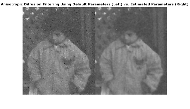 [ оценивает порог градиента и количество итераций, требуемых отфильтровать полутоновое изображение gradientThreshold,numberOfIterations] = imdiffuseest(I)I использование анизотропной диффузии.