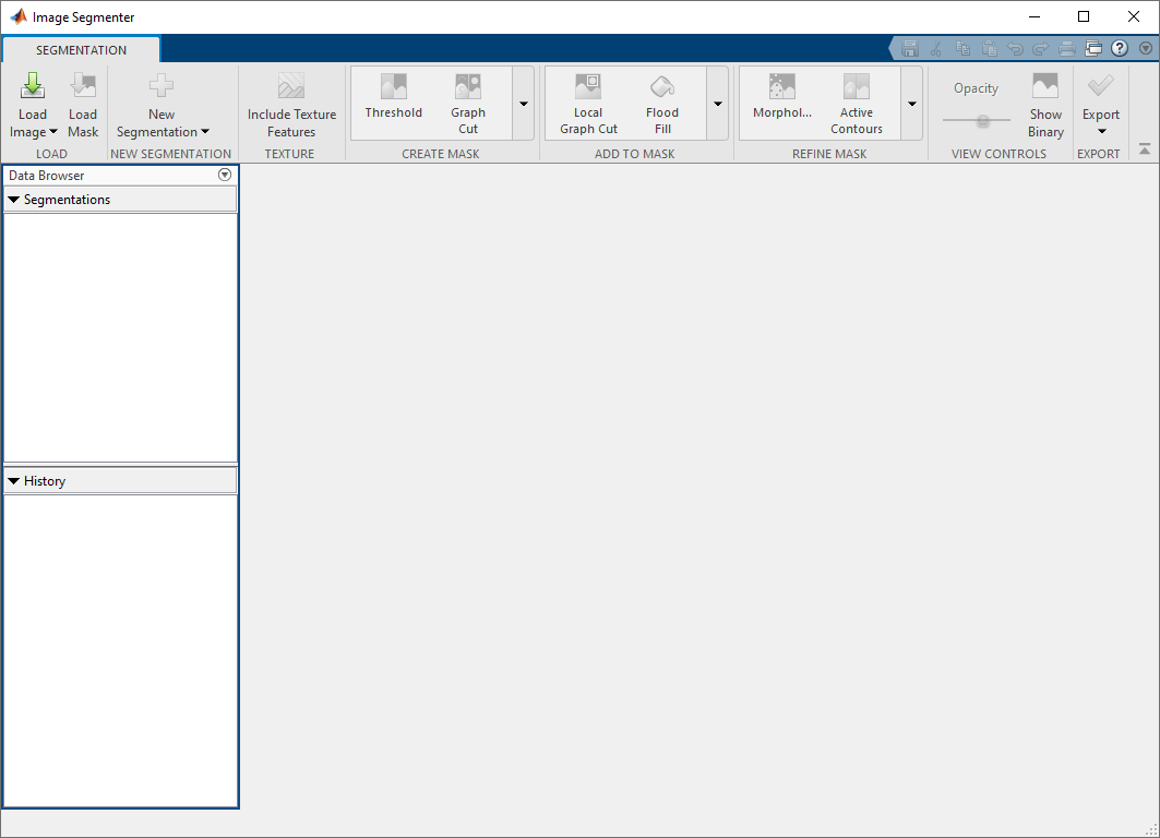 Можно также открыть приложение с помощью imageSegmenter команда, задавая имя переменной изображений.