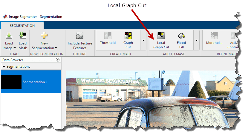 На панели инструментов приложения Image Segmenter выберите Local Graph Cut.